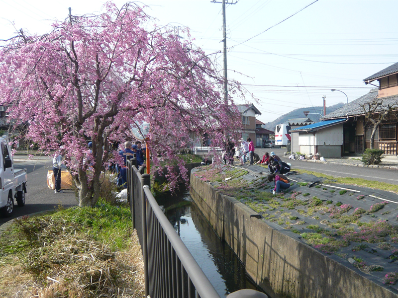 早朝から会員メンバーが参加し、山桜が咲く旧ハス川周辺法面を丁寧に除草作業を実地してくださいました。