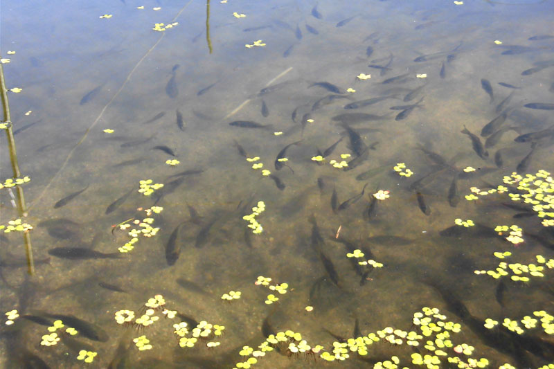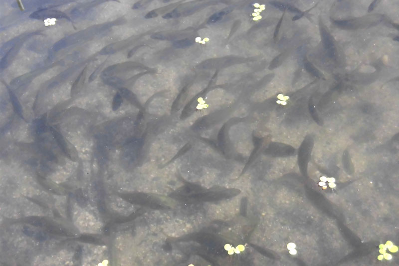 餌に群がる稚魚たちです。6月21日撮影。