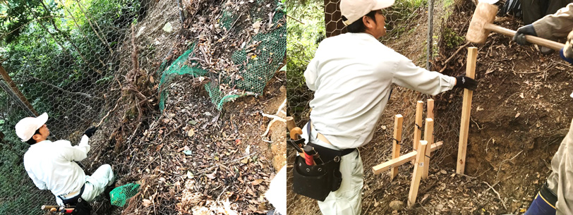 作業は、約半日を使い倒れた木材の撤去や獣害柵の補修などを中心に行い事故なく無事に終える事が出来ました。