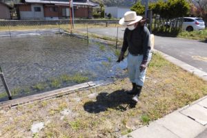 2019年4月16日 / 最終更新日時 : 2019年6月19日 midorikai1 生態系保全 鯉育成田整備 平成31年4月7日(日)16日(火) 4月になり、鯉の育成田の整備を行いました。 先ずは、7には鶏糞散布、2週間後には除草剤散布を実施し育成田の環境整備が完了致しました。 7日 鶏糞散布 16日 除草剤散布