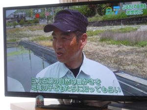 2019年5月7日 / 最終更新日時 : 2019年8月21日 midorikai1 生態系保全 福放送取材 2019年5月6日(月) 振替休日になったゴールデンウイーク最終日に福井放送「おはようふくいセブン」ふるさとの自然を次世代にと題して、美鳥会が取り組む、鮒や鯉の育成取材を受けました。 産卵藻(シュロ)付いたたくさんの卵様子、育成田等、現地を見て頂き、これまでの経緯や育成法等をお伝えいたしました。 テレビ放送風景 5月19日(テレビ画面)