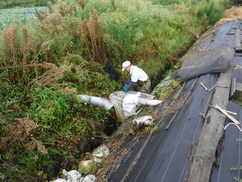 鯉の育成田捕獲準備