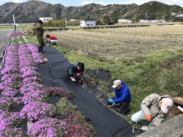 2020年4月5日 / 最終更新日時 : 2020年6月23日 midorikai1 景観形成 花壇管理作業 2020年4月5日(日) 春になり芝桜が咲き始めて来ました。 縄文の里交流センターにある花壇の防草シートの整備や周辺の草刈り等を5日と9日に渡り行いました。 やはり綺麗になると気持ちいのいいものです。