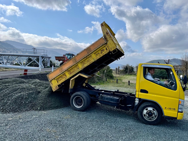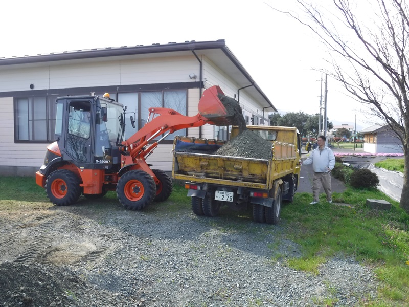 縄文の里交流センター等での道路補修の砂利運搬等重機を使用し実施致しました。