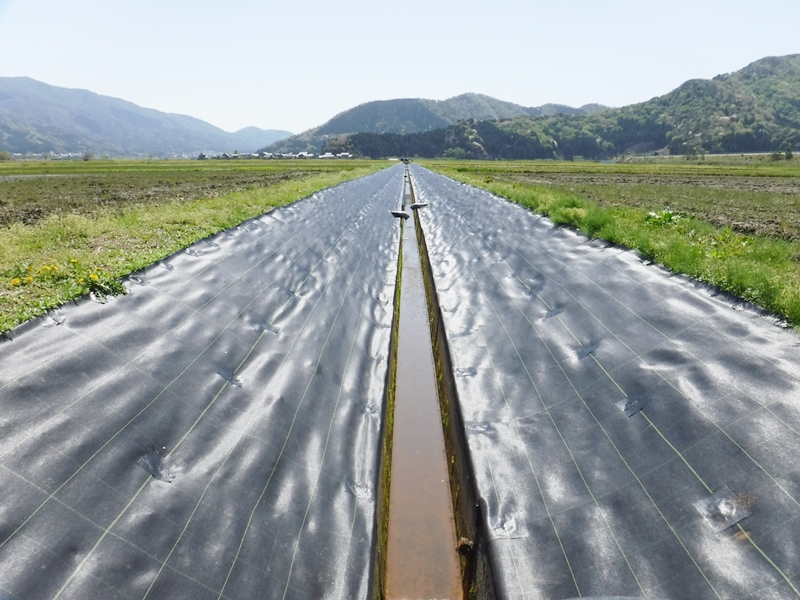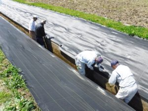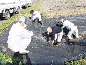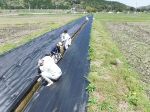 快晴になりました4月17日の日曜日、早朝から防草シート張り作業を行いました。