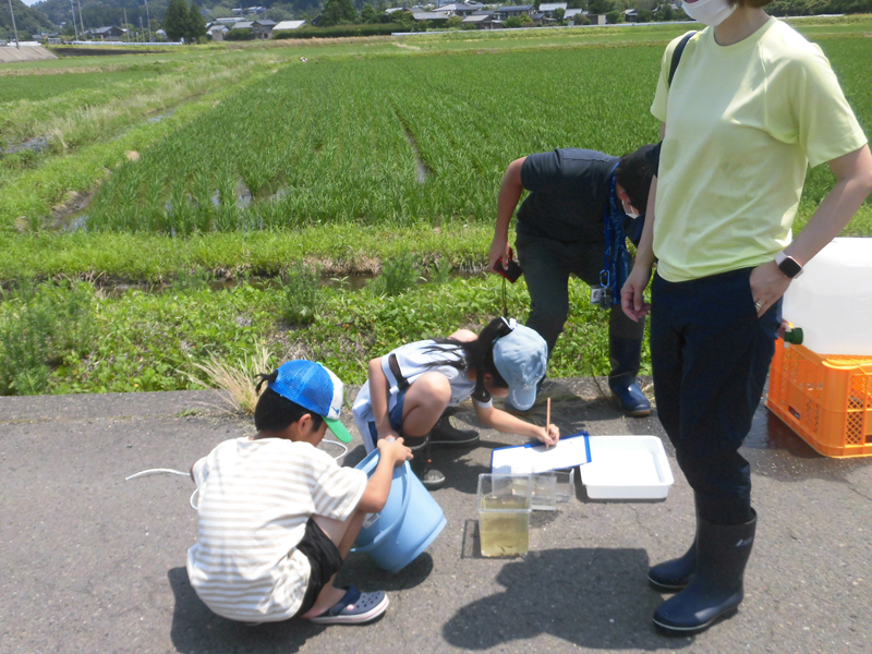 子ども会参加を頂き水田魚道生き物調査を実施。