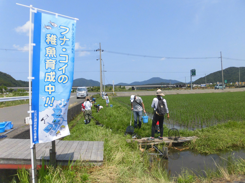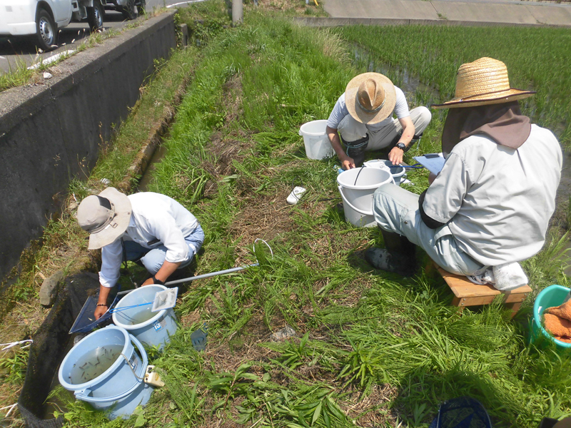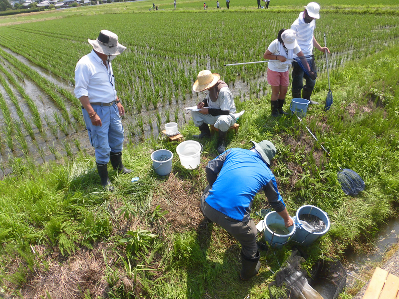 本年も水田内の稚魚を捕獲し数量サイズ等の調査を行いました。