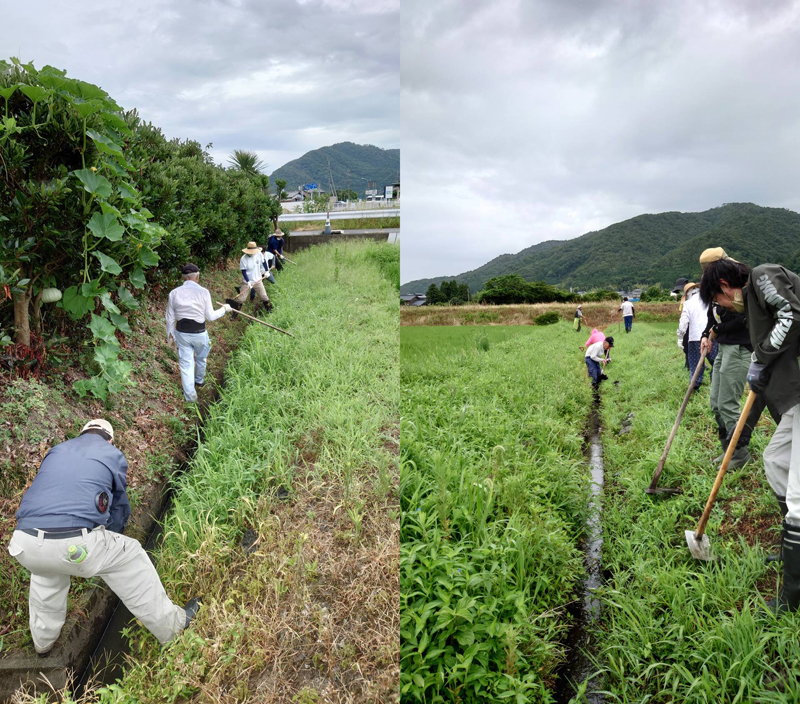 2022年7月3日 / 最終更新日時 : 2022年9月13日 midorikai1 基礎活動 排水清掃(農家組合) 2022年7月3日(日) 恒例となっております農家組合に於ける排水清掃実施しました。 日曜日の早朝8時より、鳥浜区内の農家の皆さんのご参加より各地区に分かれての排水掃除です。 雨の心配しましたが、無事に終える事が出来ました。 蒸し暑いなかたいへんお疲れ様でした。