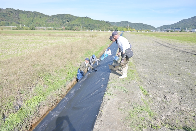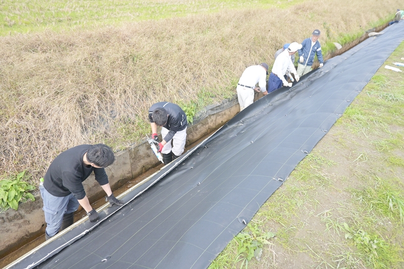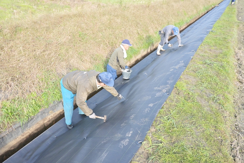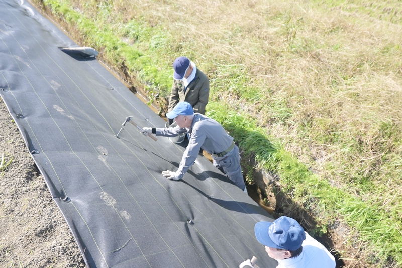 2024年11月10日 / 最終更新日時 : 2024年11月10日 midorikai1 基礎活動 防草シート張り 2024年11月10日(日) 快晴となりました11月の日曜日早朝より美鳥会会員にて防草シート張り作業を実施。 今回は法面形成後の片面に防草シートを施しました。 側溝コンクリート表面の研磨、防草シート張り、アンカーピンの打ち込み固定、防草シート張り裾張り等を行いました。 皆さんのご協力で、午前中4時間午後から2時間で防草シート張りが完了いたしました。 お疲れ様でした。