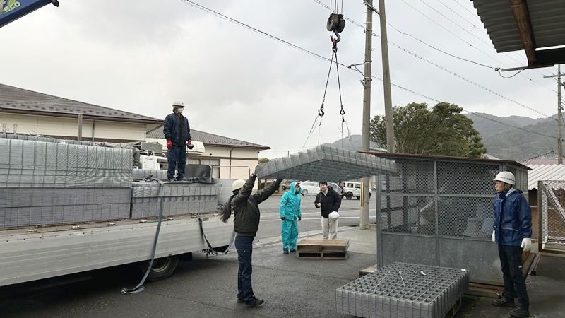 2025年12月22日 / 最終更新日時 : 2026年2月15日 midorikai1 基礎活動 獣害柵搬入作業 12月22日(月) 12月年も押し迫った冬の寒い朝。 区のセンター倉庫に獣害柵が到着しました。 約2時間をかけてリフト等で搬入作業を行いました。 数量や今後の作業サポート等を確認し無事に作業を終える事が出来ました。